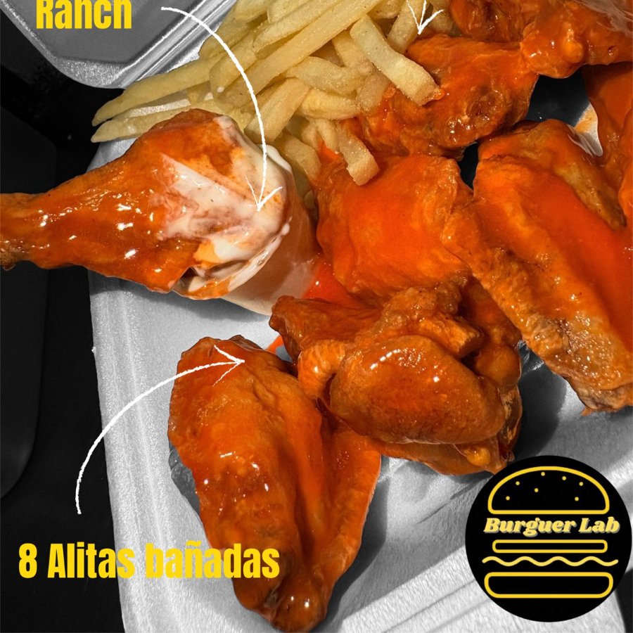 8 Alitas y papas