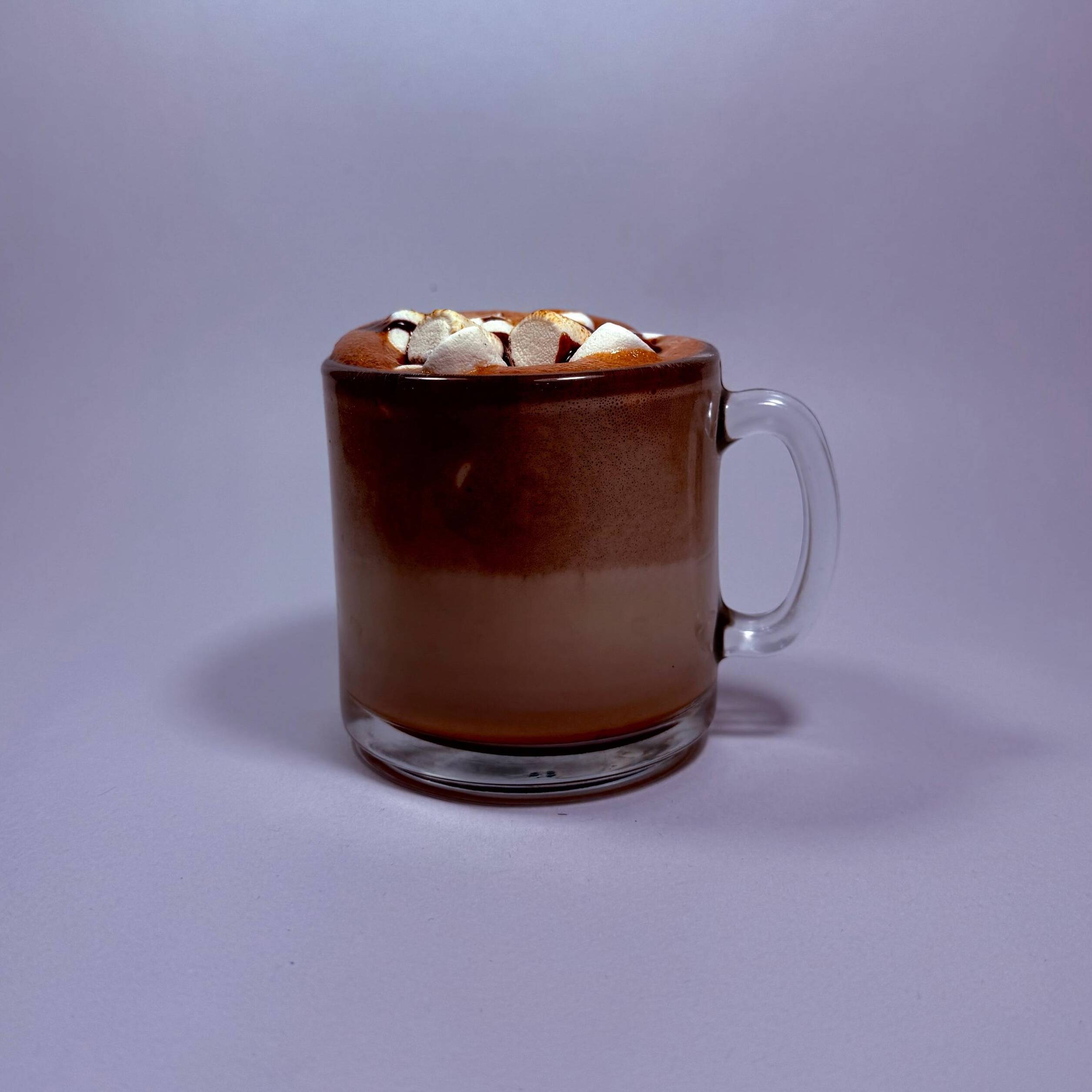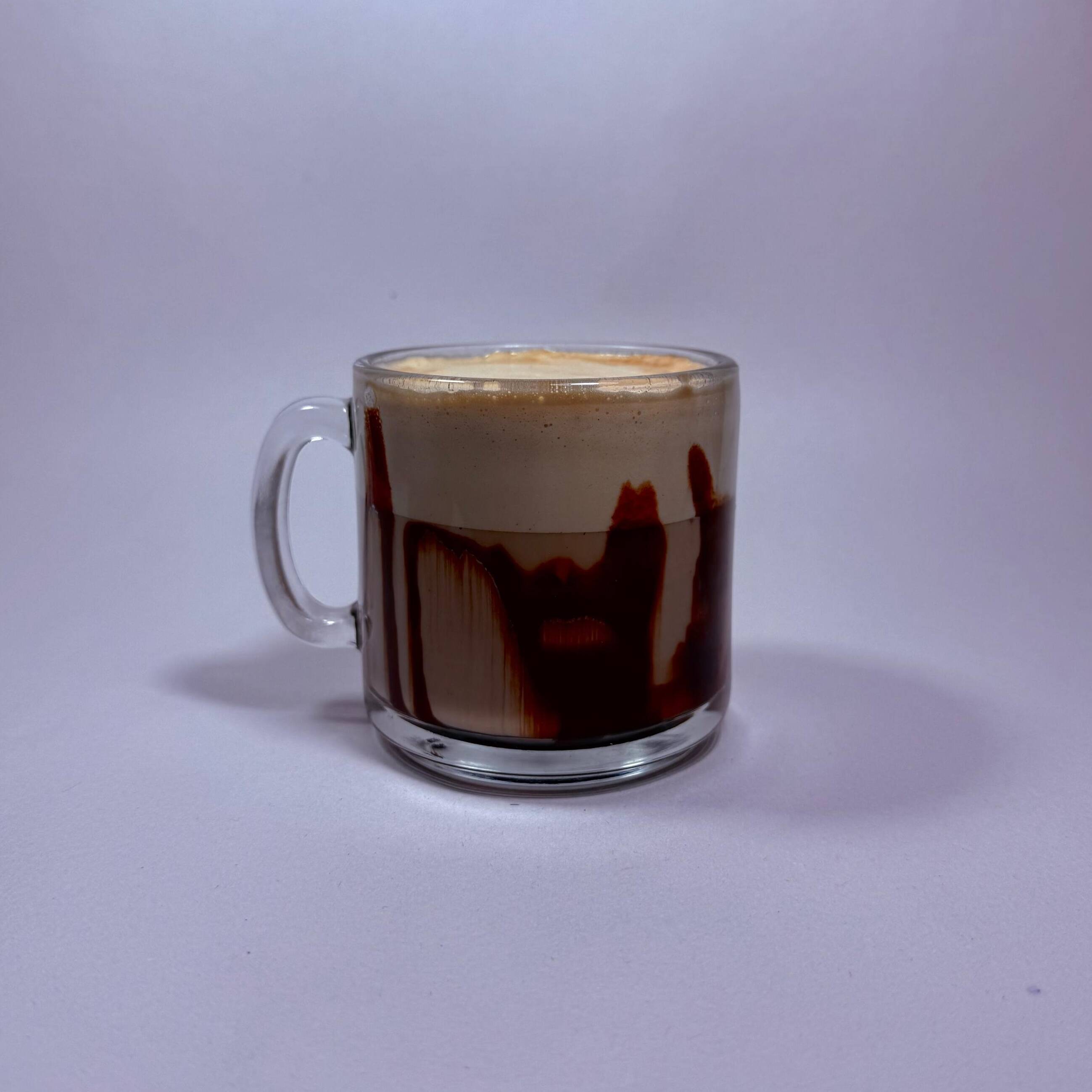 Bebida de leche espumada con shots de café caliente y jarabe de chocolate 🐾