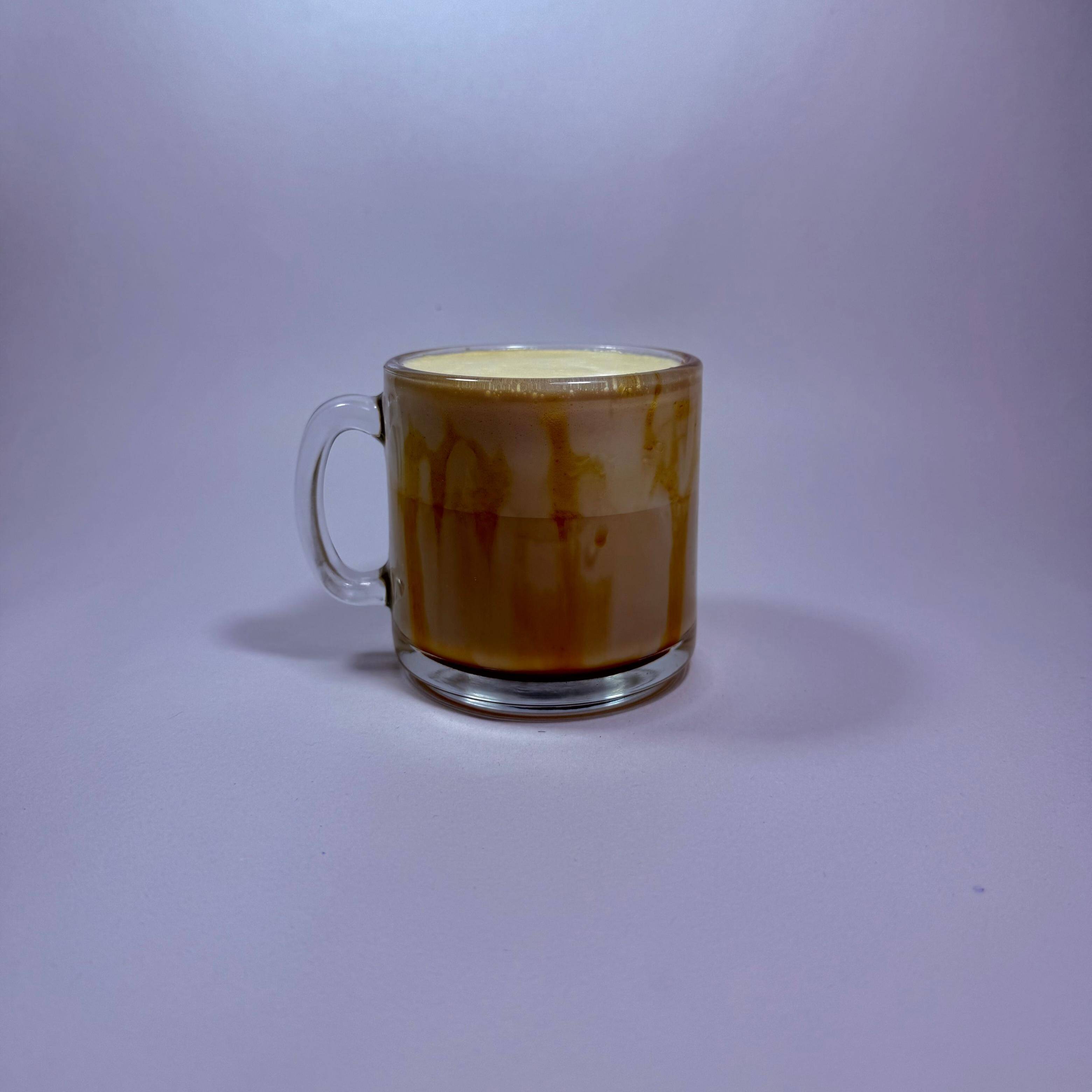 Bebida de leche espumada con shots de café caliente🐾 Un toque de vainilla y caramelo casero