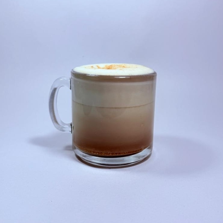 Bebida de leche espumada con shots de café caliente🐾 La proporción de espuma es mayor a la de la leche