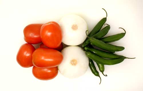 1 kg De tomate, 500 de cebolla, 250 g de chile serrano.