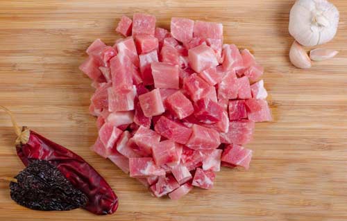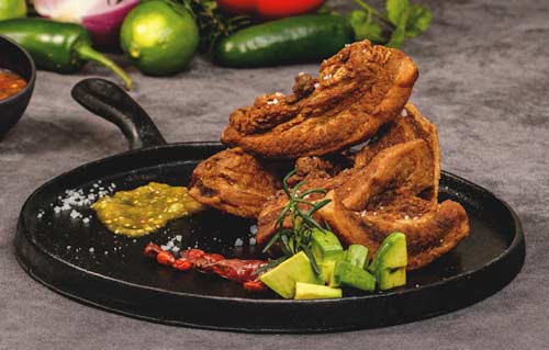 Cachete de puerco hecho chicharrón, porción 1 kg.