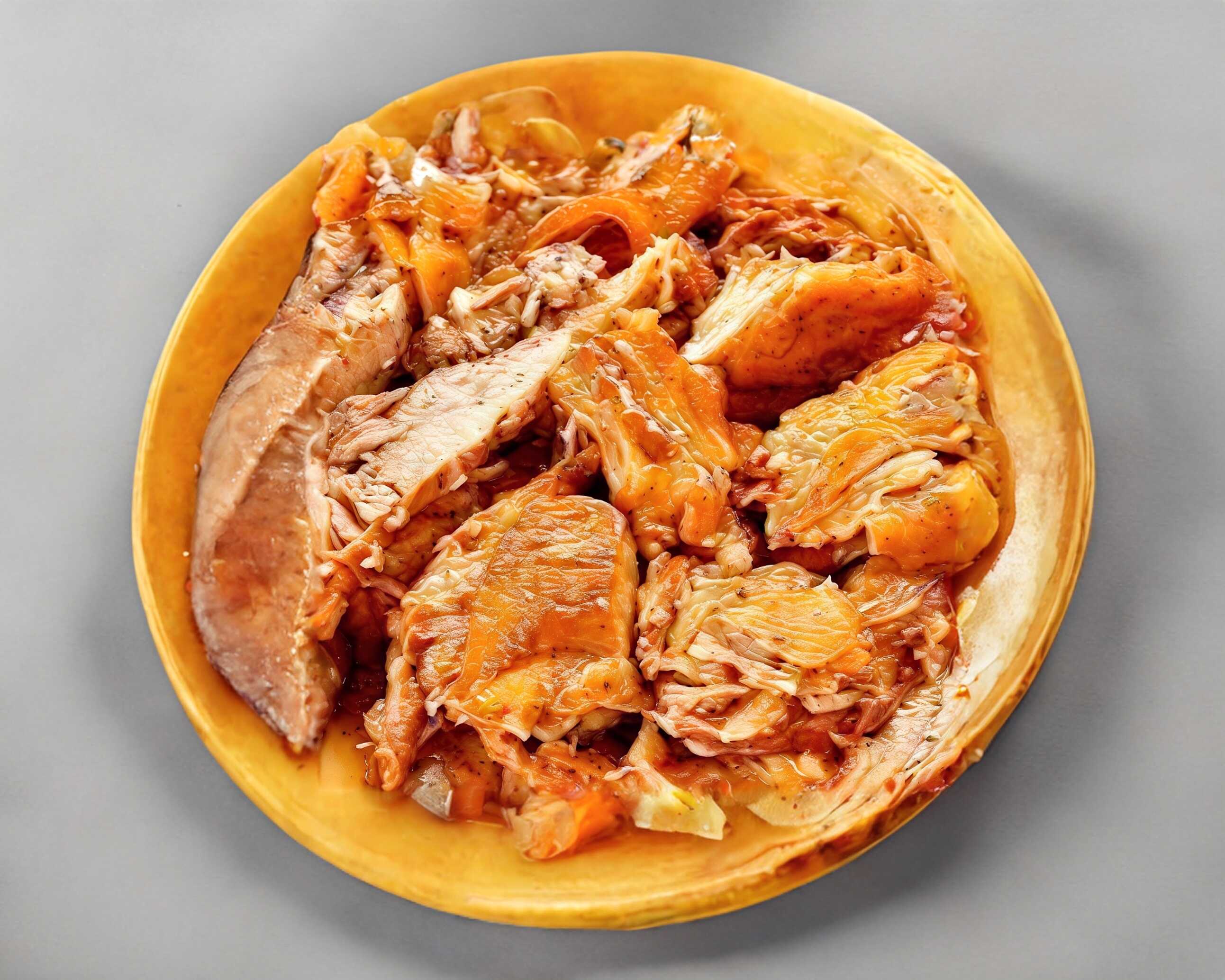 Orden de cuerito confitado en manteca de cerdo acompañado de salsa, limones.