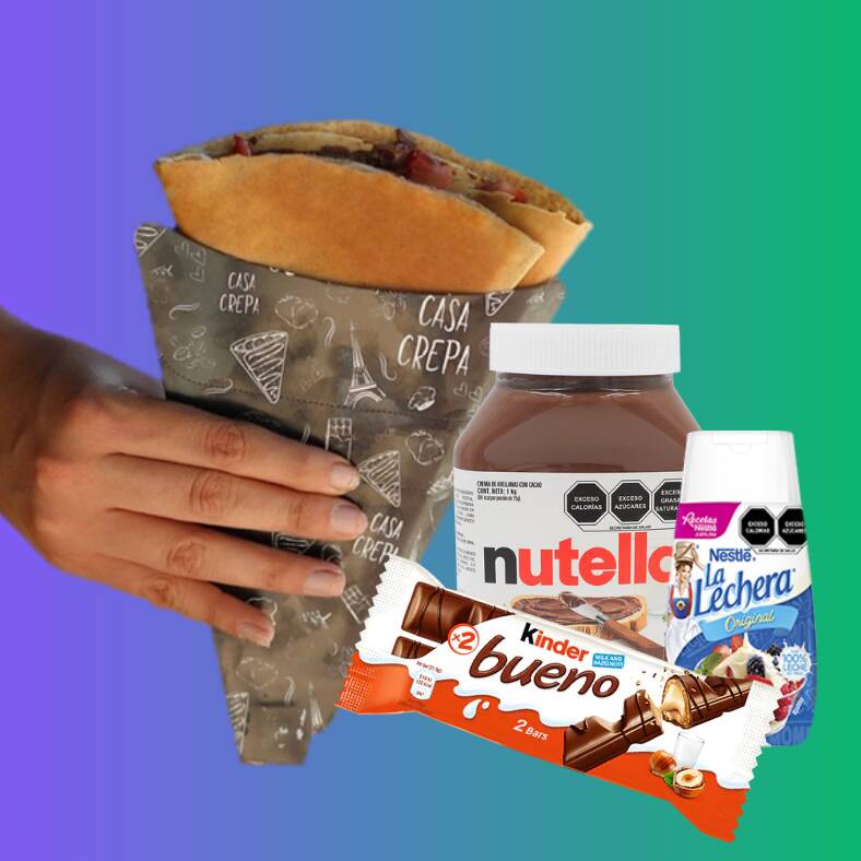 Crepa rellena de nutella, lechera y kinder bueno