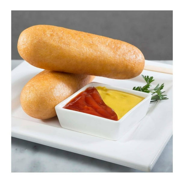 Pan mediano, aderezo de la casa y salchicha de pavo envuelta en tocino.
