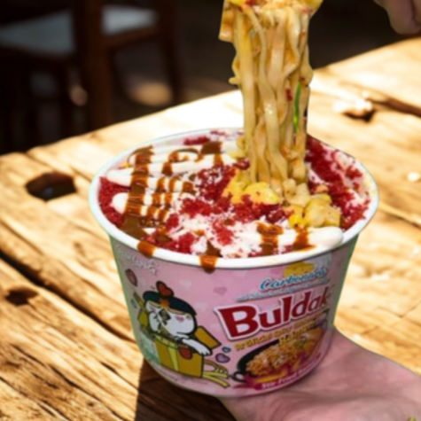 Ramen preparado con medio litro de elote, queso, mayonesa y crema.