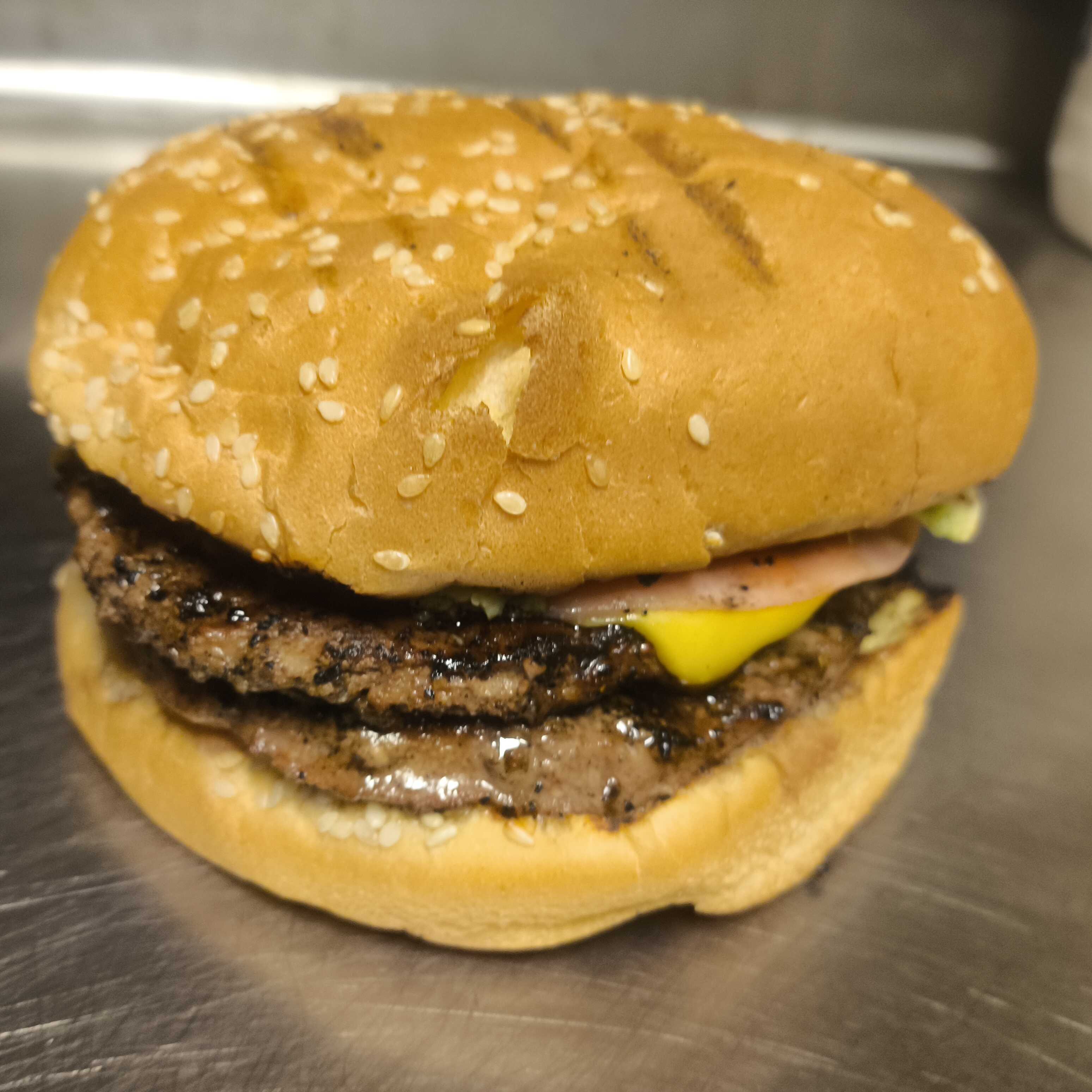 Pan, Doble carne premium, Aguacate, Jamón, Queso Cheddar amarillo y aderezos