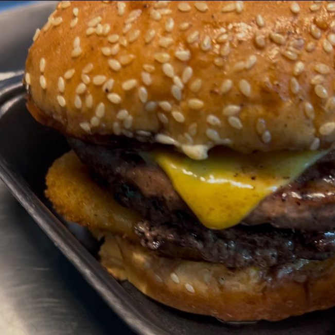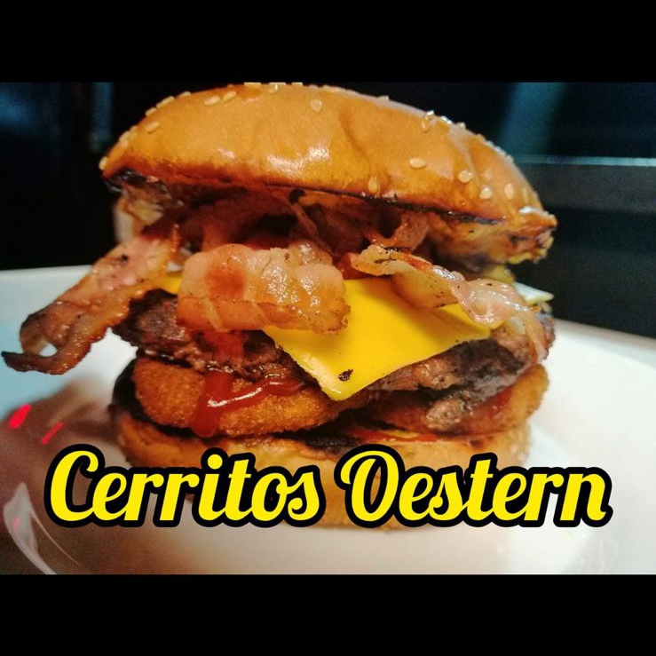 Pan, Doble carne premium, Queso Cheddar, Aros de cebolla, Tocino, Salsa BBQ y aderezos