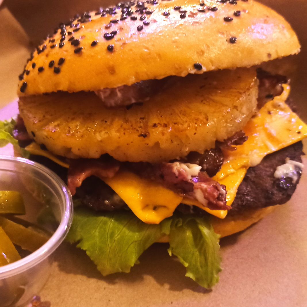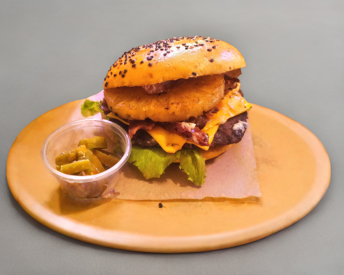 Seguramente la has probado pero no de esta manera, piña al grill, carne de res, tocino, queso y vegetales.