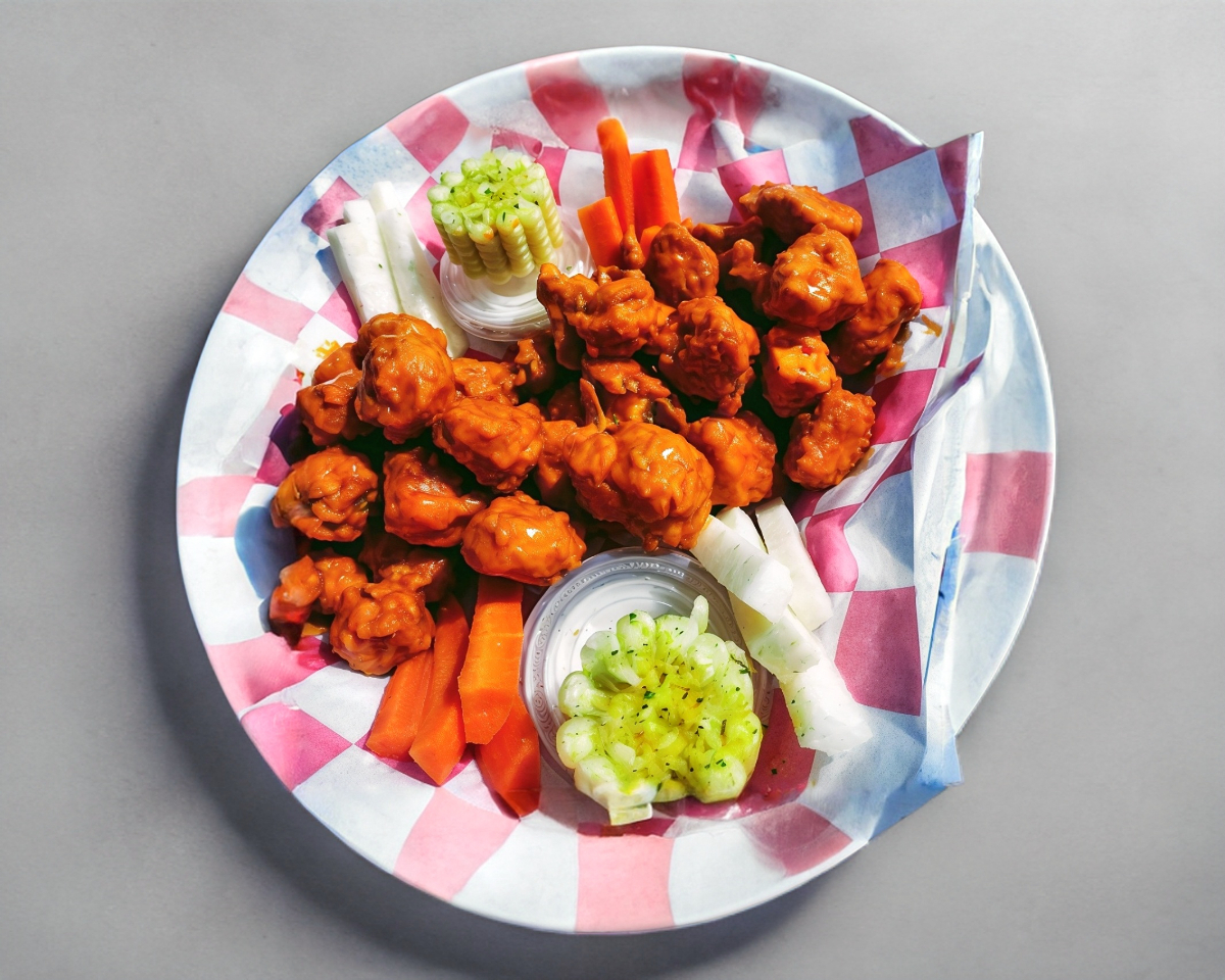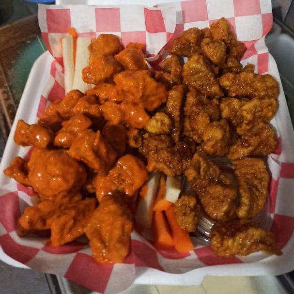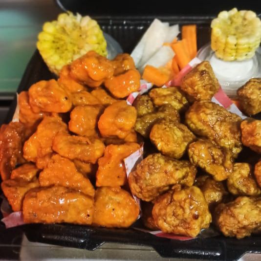 1 Kilo de boneless bañados en 2 salsas acompañados de verduras y aderezos.