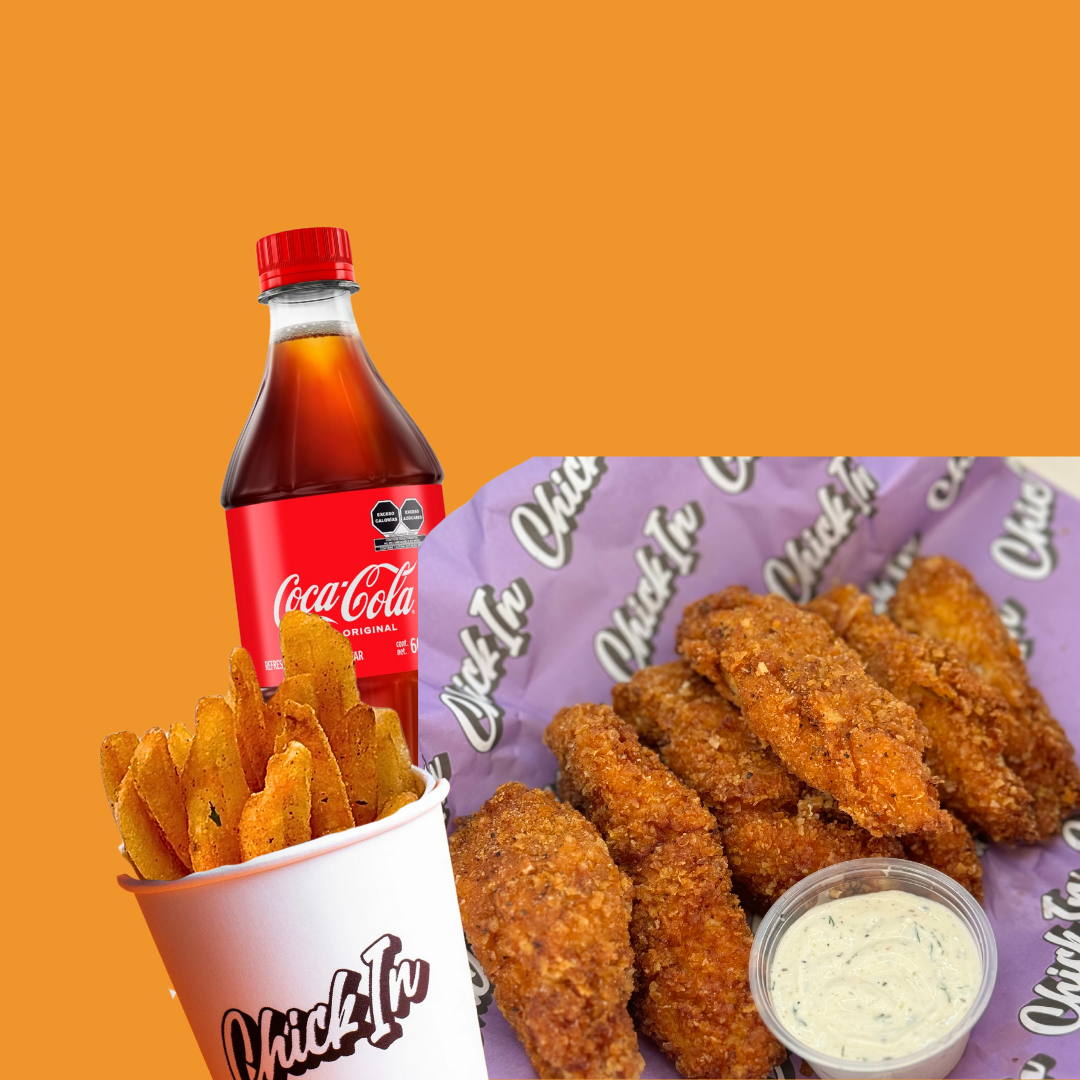Disfruta de nuestros deliciosos tenders acompañados de nuestras clasicas chickin fries y tu bebida favorita