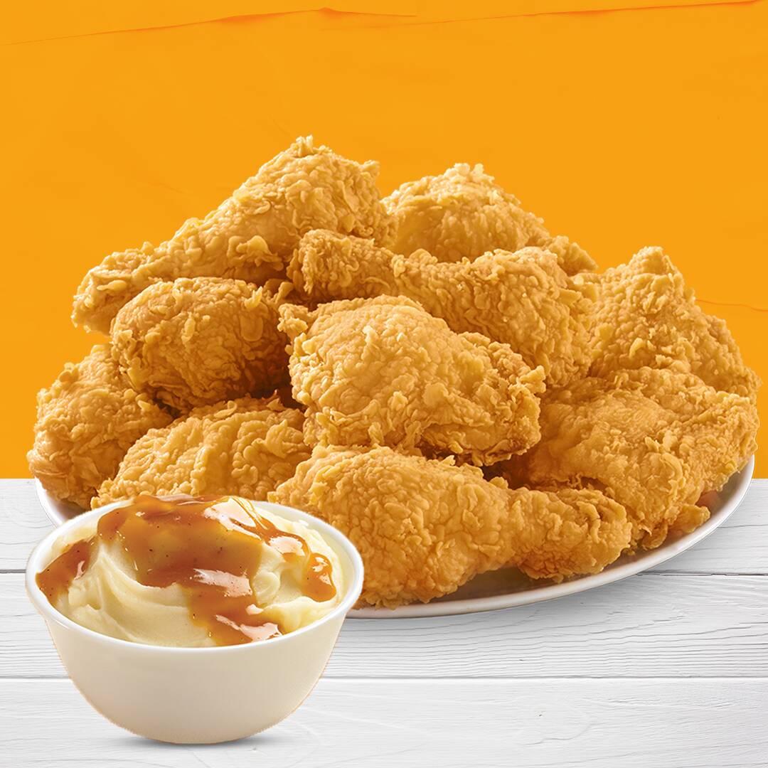 8 piezas de pollo frito de pierna y muslo + 1 puré familiar