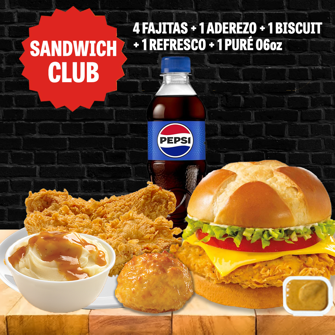 Combo individual 4 fajitas, puré, 1 aderezo, 1 biscuit y refresco + 1 hamburguesa club