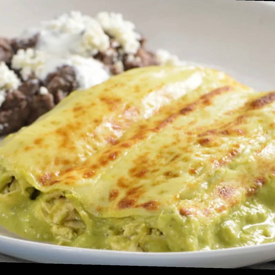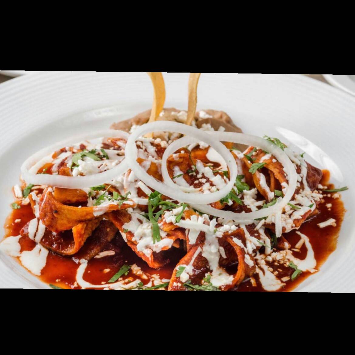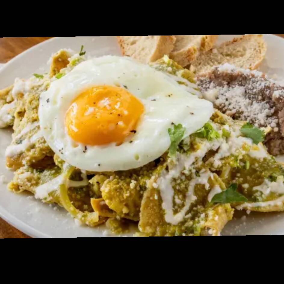 Chilaquiles en salsa de la abuela acompañados de frijoles refritos y 1 pieza de huevo