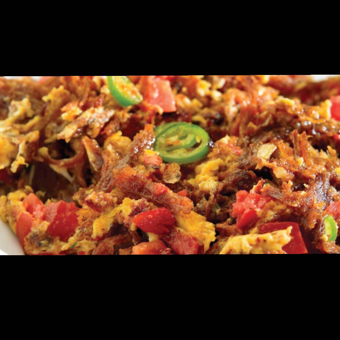Huevo con jamón acompaña de Frijoles refritos y tortillas mixtas