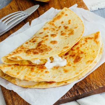 Rica quesadilla en tortilla de harina acompañado de salsa y pico de gallo