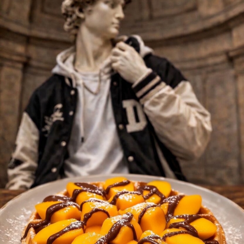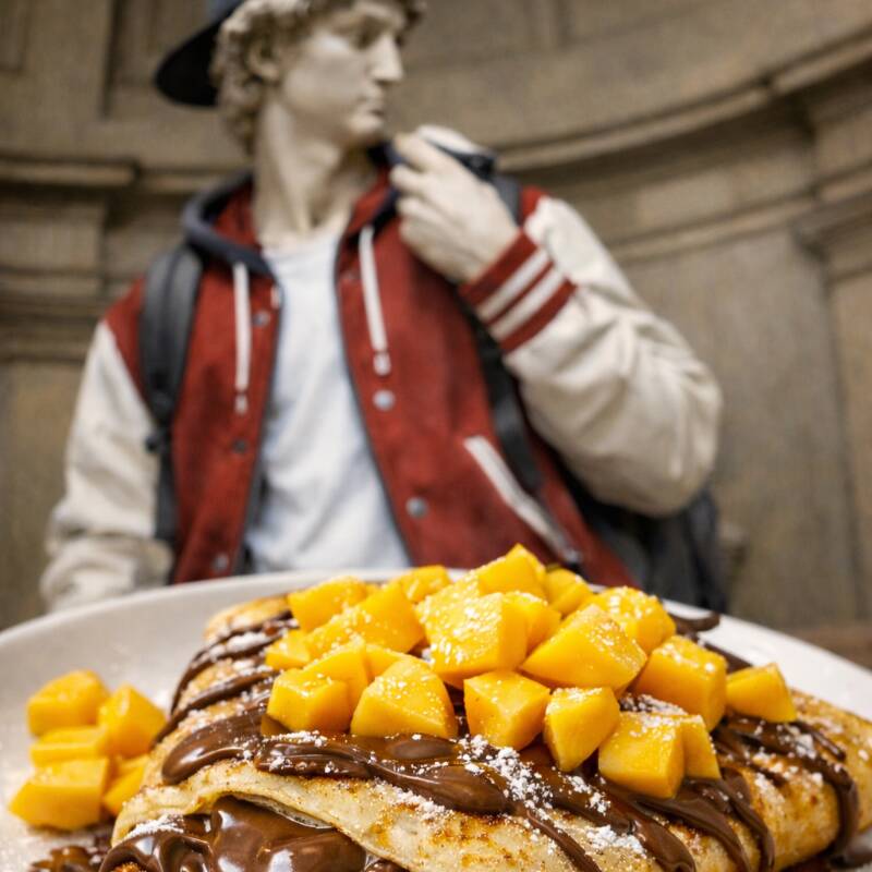 Deliciosa crepa con una capa cremosa de nutella y jugosos trozos de mango fresco una combinacion perfecta entre dulce y lo fresco del mango