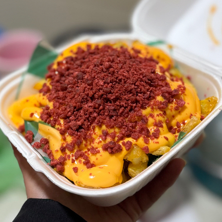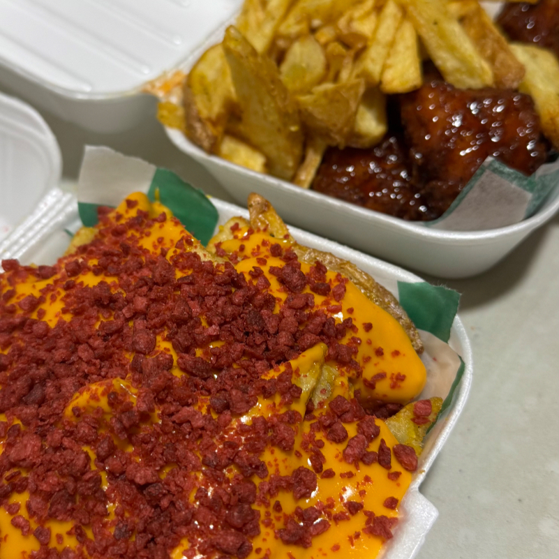 Orden de papas con pimienta limon, queso y trocitos de tocino