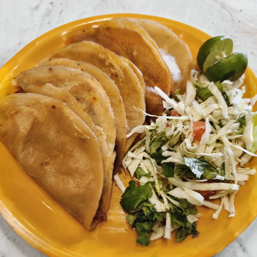 Tortilla de maíz rellena de exquisita deshebrada guisada con el toque especial de la casa.