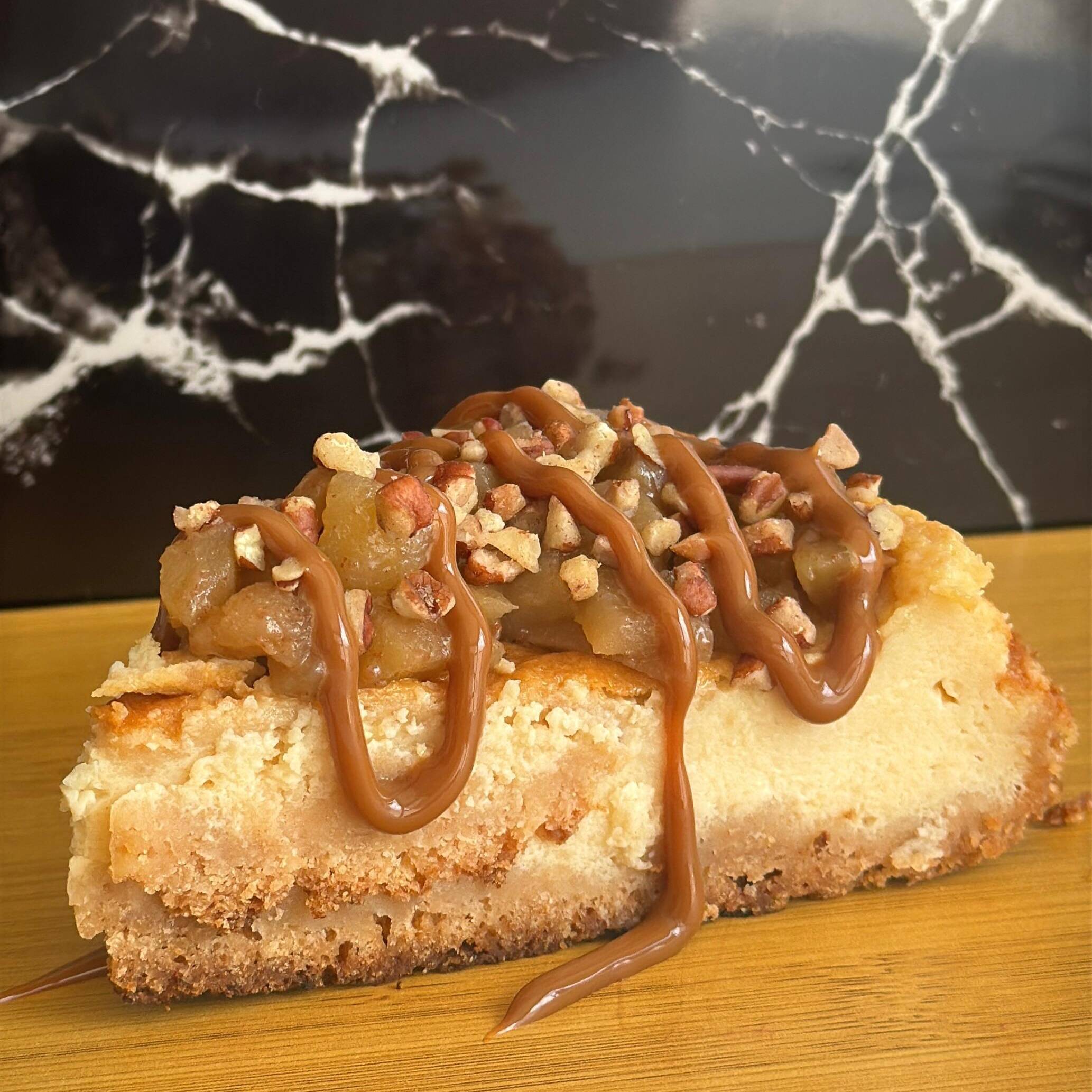 Cheesecake manzana con canela, nuez, dulce de leche
