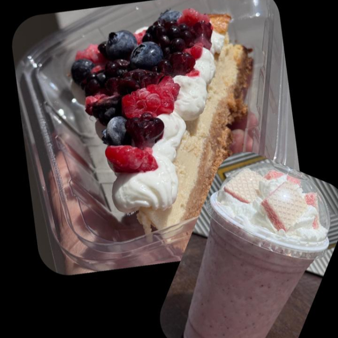 Cheesecake Frutos Rojos*1 + Malteada de Fresa*1