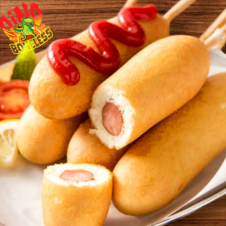 Banderillas de salchichas 3 pzas, incluye Mayonesa y Ketchup