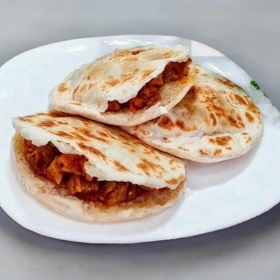 Gordita de Chicharron Prensado guisado con una rica salsa que no pica, Incluye Salsa
