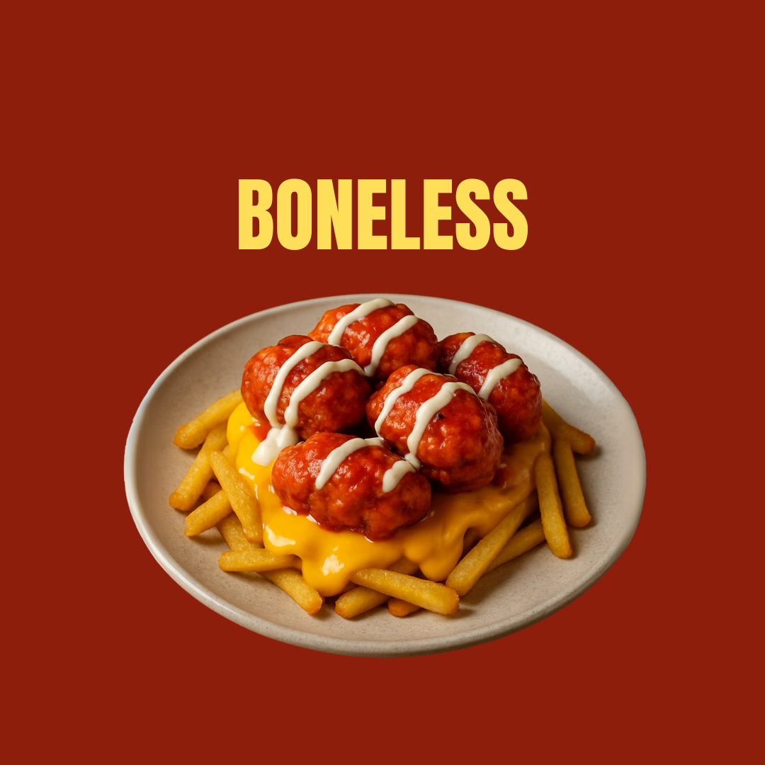 Deliciosa hamburguesa de boneless , ensalada de repollo y zanahoria , quedo cheddar y aderezo especial. Incluye Papas a la Francesa