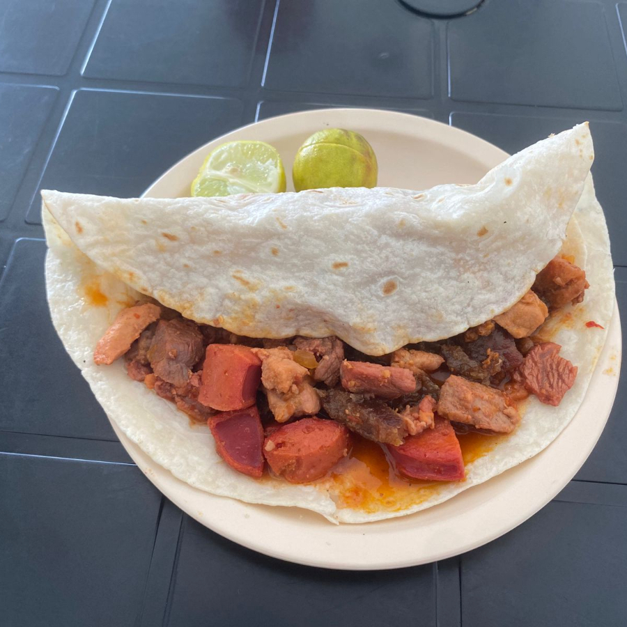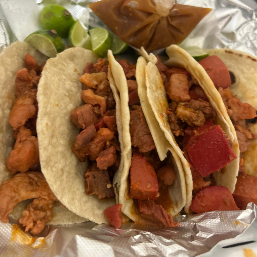 Incluye tortillas, limones, salsas, servilletas y cucharas