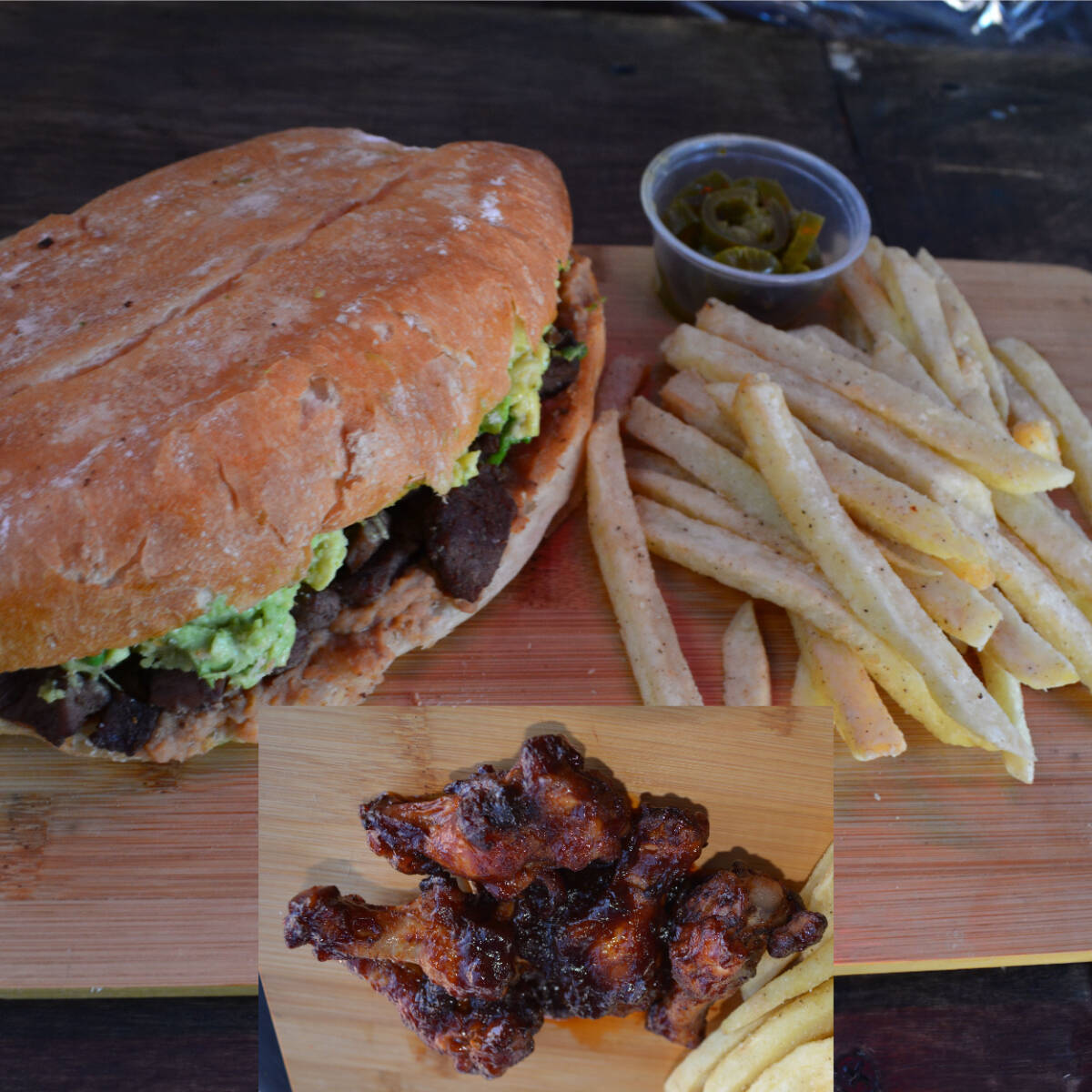 Torta de Arrachera Premium*1 + Alitas Buffalo con Papas*1