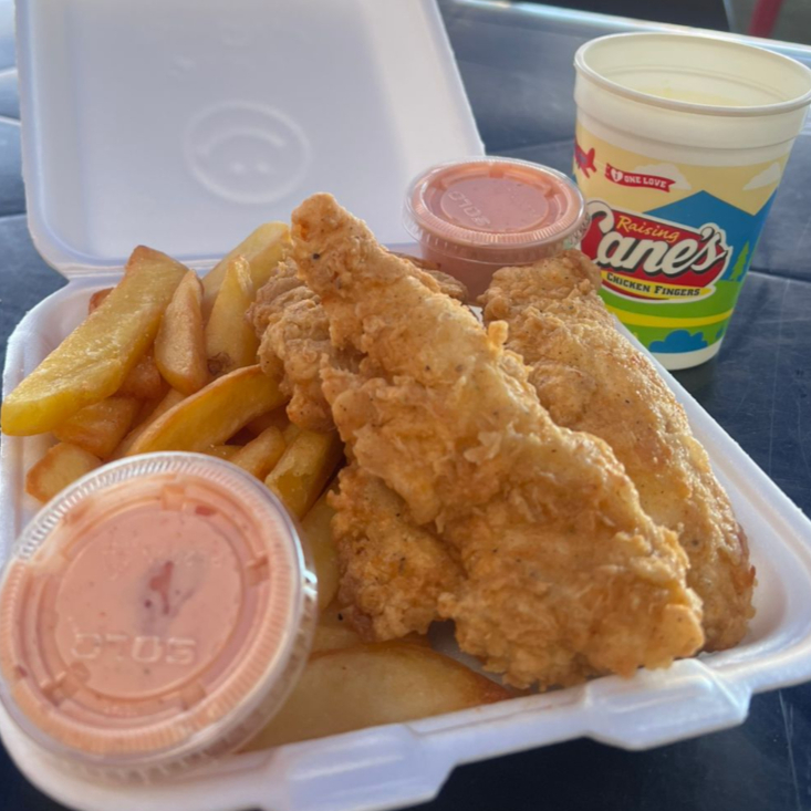 Crujientes, jugosas y llenas de sabor 🔥. Deliciosas tiras de pollo empanizadas al estilo Raising (3), acompañadas de papas fritas doraditas y nuestro aderezo especial 🤤. ¡Perfectas para compartir (o no compartir 😏)!