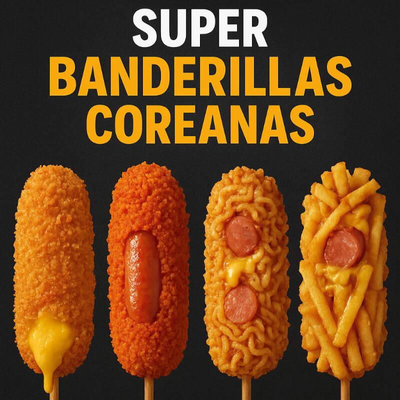🎉 Banderillas Coreanas – El antojo que está rompiendo en todos lados 🇰🇷🔥 Crujientes, doradas y con el toque más loco de sabor 😋. Nuestras Banderillas Coreanas llegan con empanizados únicos (Panko, French Fries, Cheetos, y más 😍) y rellenos irresistibles como queso derretido 🧀, SALCHICHA jugosa 🌭 o la mezcla explosiva de ambos 💥. ¡Un crunch que se escucha y un sabor que no se olvida! 🌶️✨