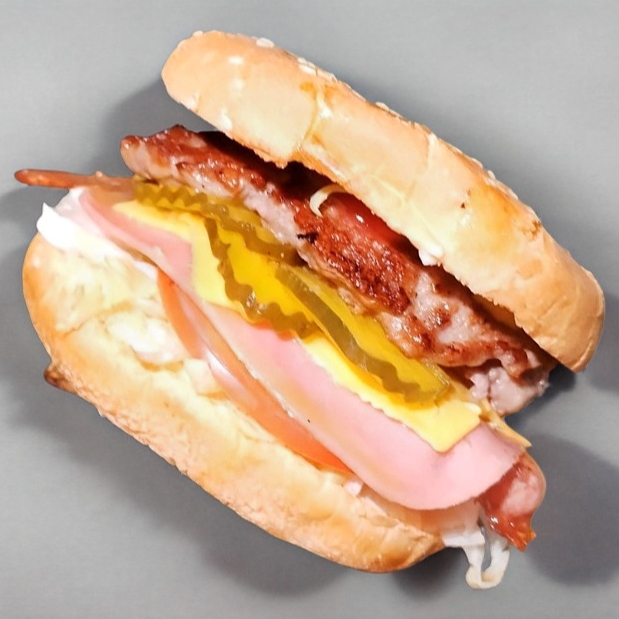 Carne de res 100% casera, verduras, aderezos, jamón y queso americano.