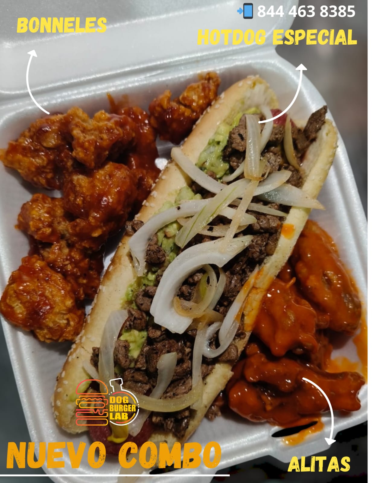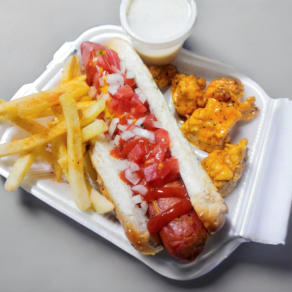 1 Hotdog jumbo, 6 boneless, 6 alitas y refresco 400ml.