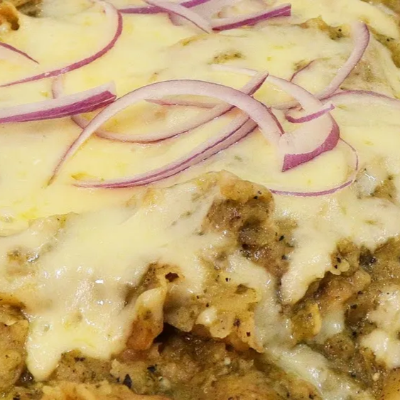 Chilaquiles salsa mixta no muy picante, acompañados con huevo estrellado o pollo y frijoles refritos o en bola.