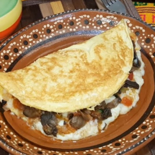 Delicioso omelette acompañado con frijoles refritos o en bola con los ingredientes que desees agregar