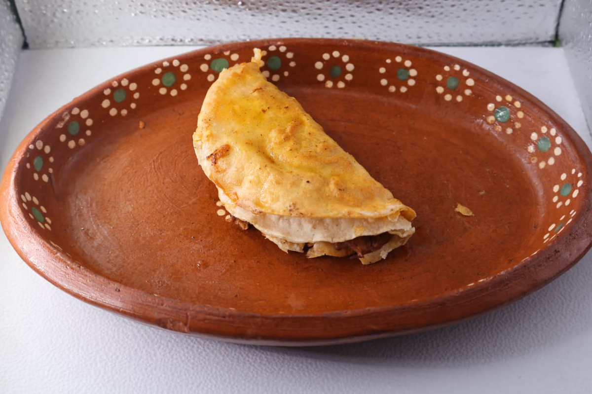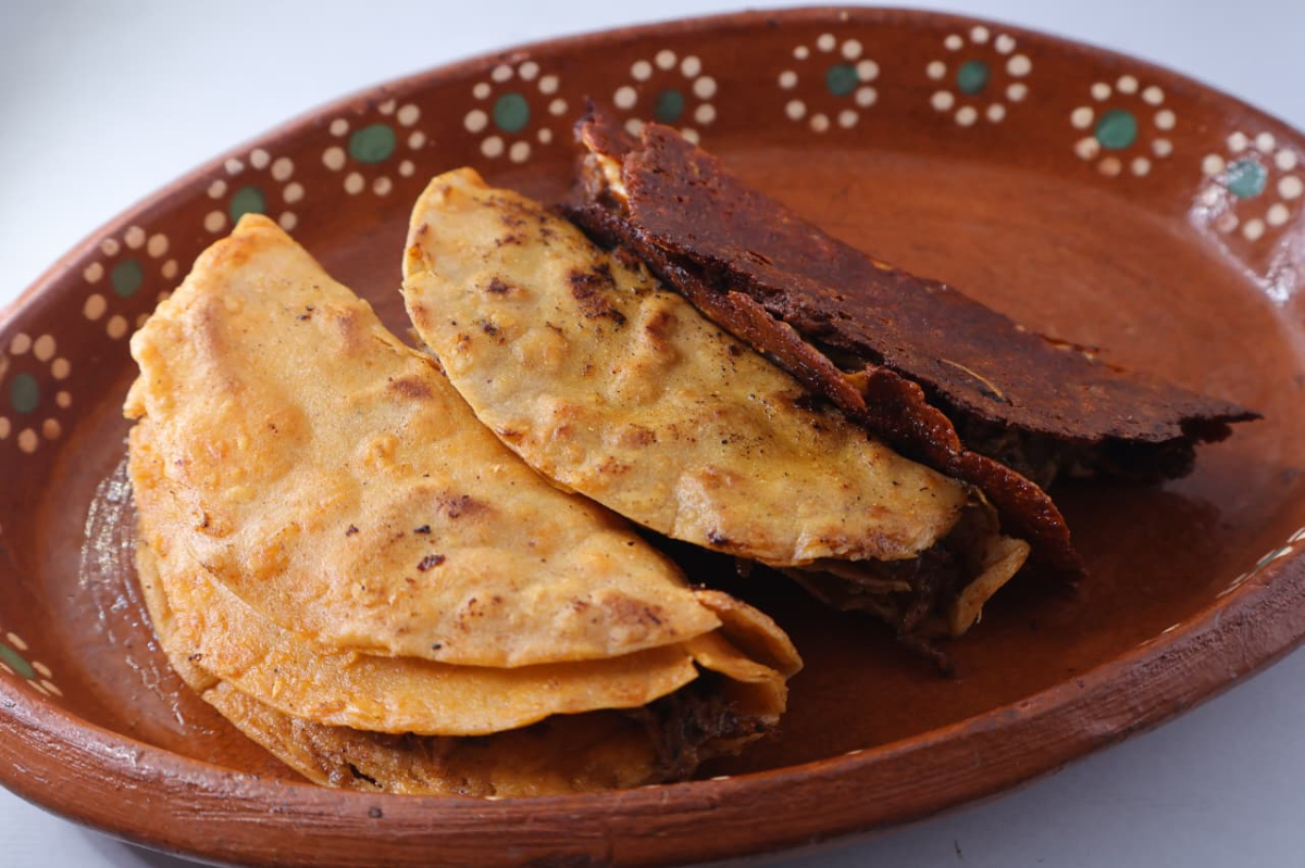 Taco de birria de res en tortilla bien doradita