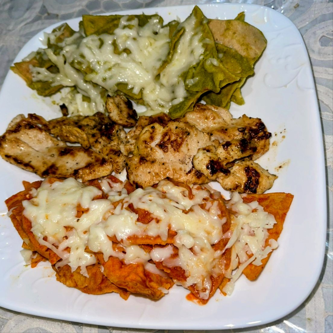 Dos tipos de chilaquiles suizos y del abuelo con pollo