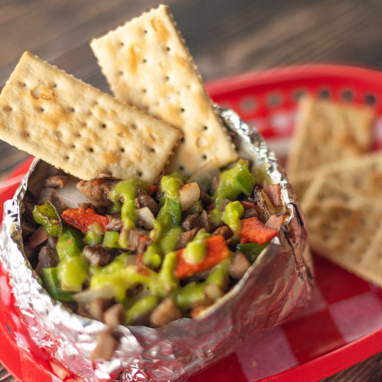 5 pz. Incluye Arrachera, alambre, queso Chihuahua y champiñones.