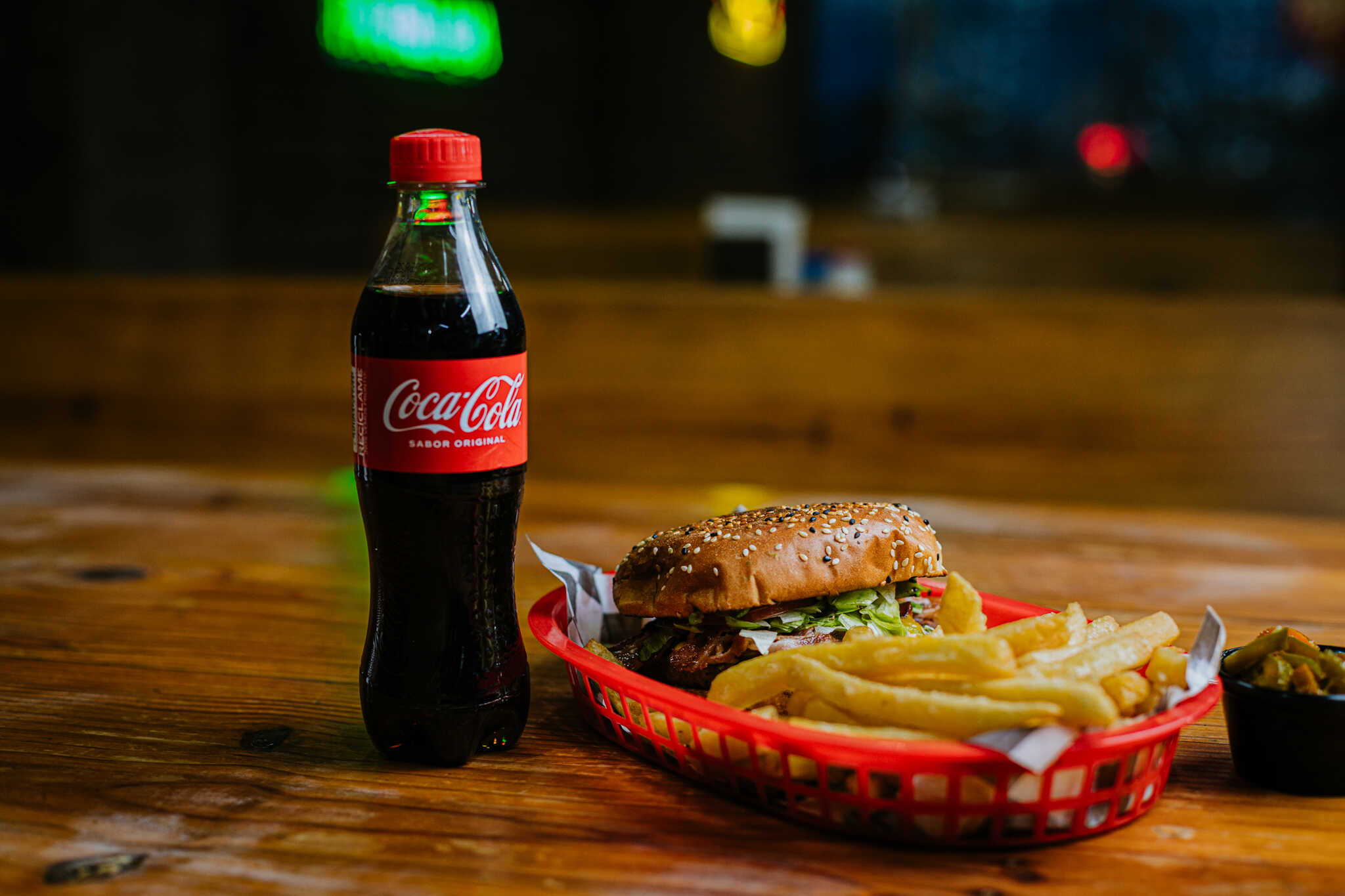 Hamburguesa sencilla con carne y queso + un refresco de tu elección