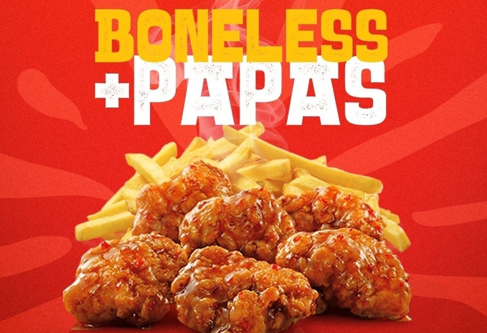 300 gr de boneless bañados en salsa a elegir, acompañados de papas fritas