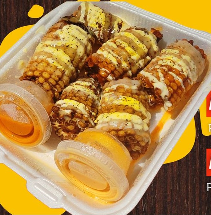 5 Piezas de elote bañados en salsa bufalo, con chipotle y chile de árbol.