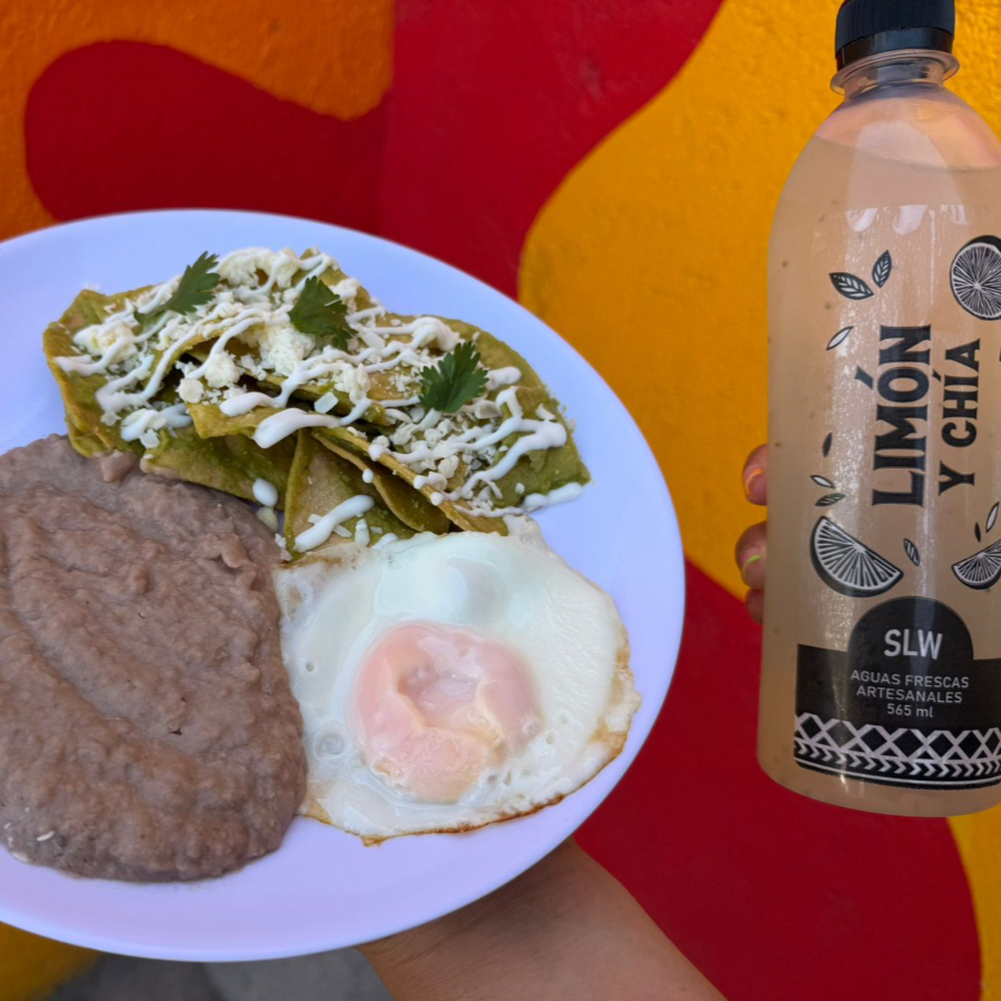 Chilaquiles Verdes o Rojos con huevo estrellado + bebida