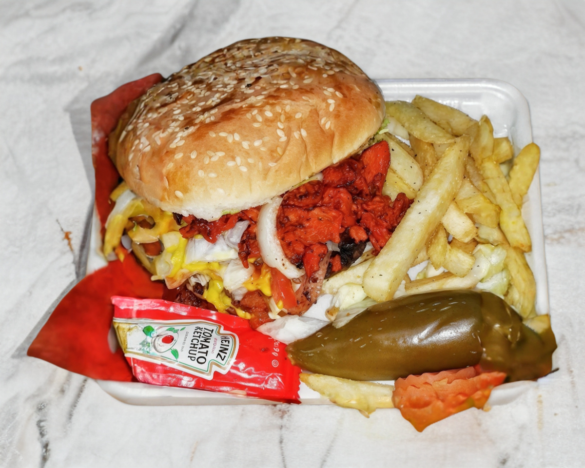 150 gr. de carne, aguacate, queso chihuahua, jamón y carne de trompo. Incluye papas a la francesa.
