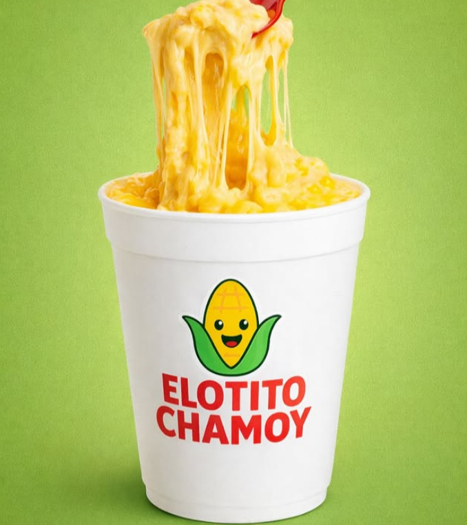 Irresistibles nachos con elote, queso blanco, mayonesa, crema y salsa de 3 quesos.