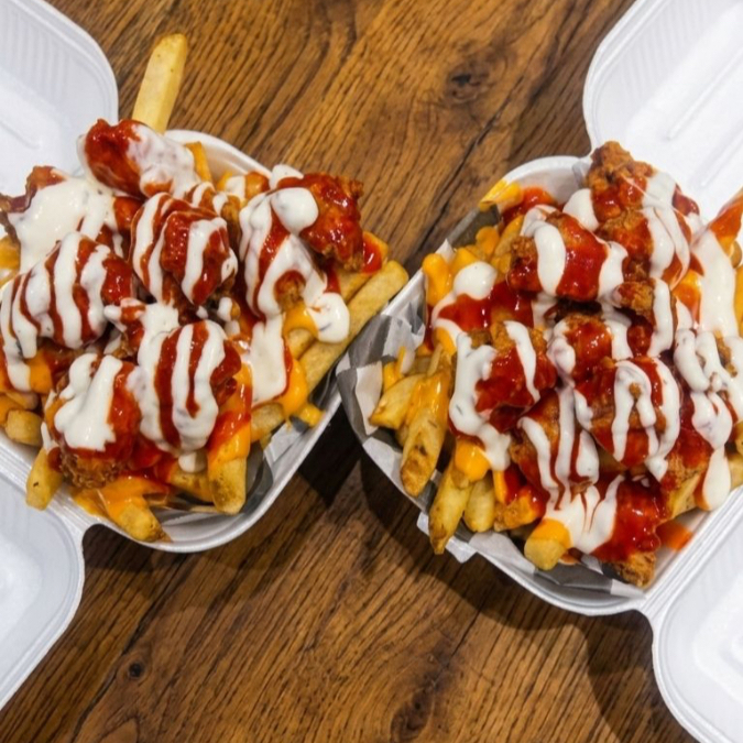 300g de papas crujientes cargadas con 150g de boneless jugosos, bañados en queso amarillo, ranch cremoso y salsa búfalo 🔥🤤 Una bomba de sabor perfecta para quitarte el antojo (o compartir… si quieres 😏