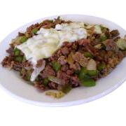 Chuleta de res 110 gr picada y sazonado de la casa, queso y tortillas de maíz.
