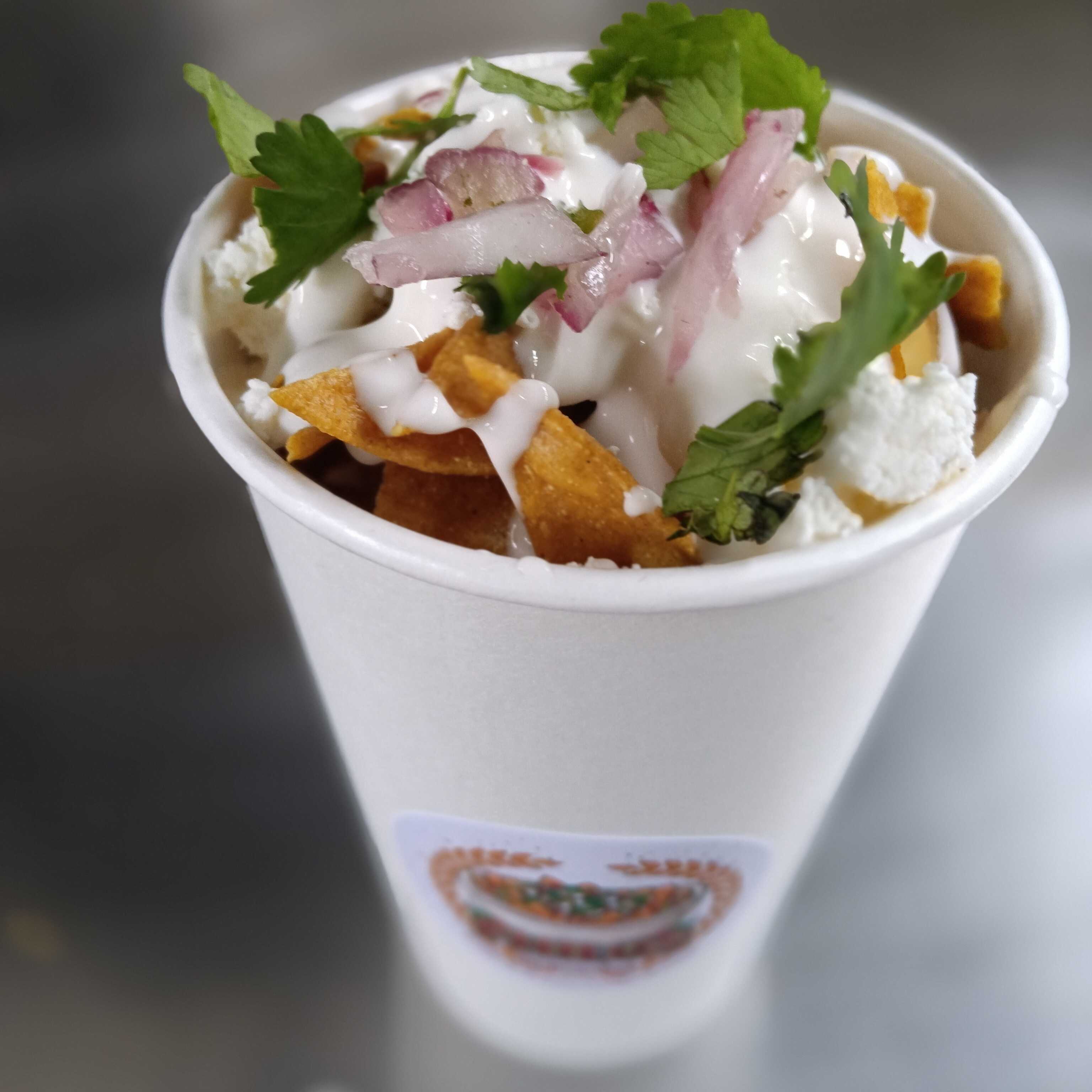 Vaso de 600ml con chilaquiles, tortilla amarilla, queso fresco, crema, cilantro y cebolla. Recomendado para los que comen poquito..