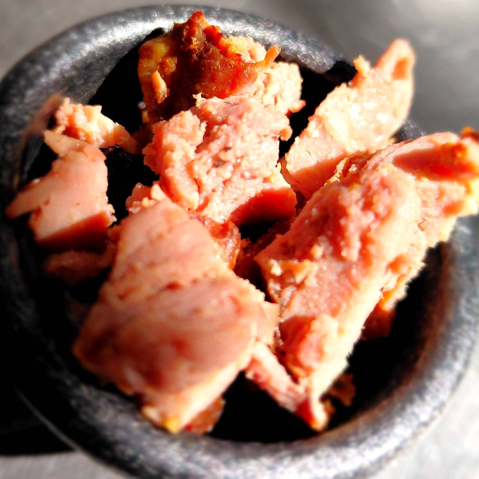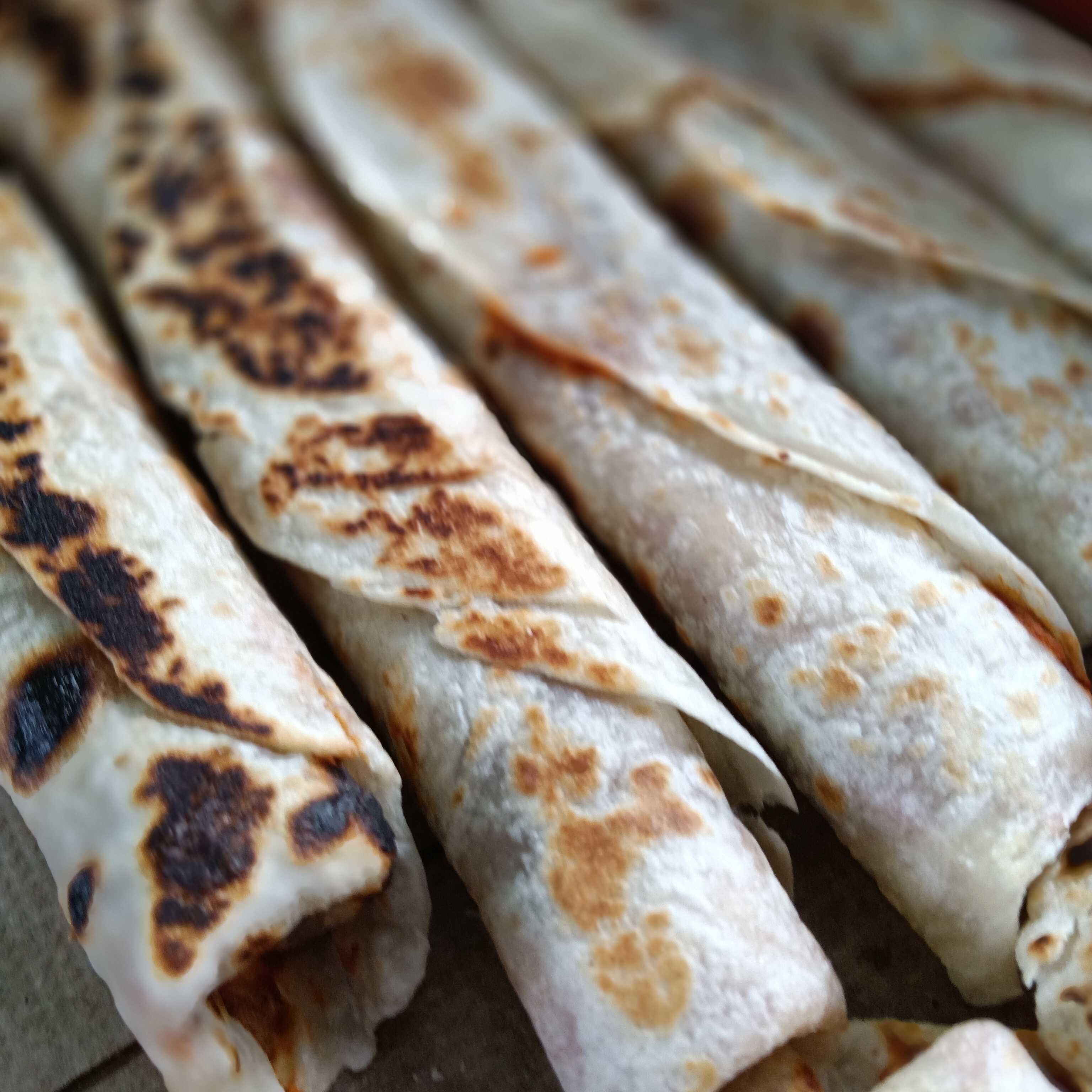Burrito de 15cm de chicharron prensado en salsa molcajeteada, incluye lechuga y salsa