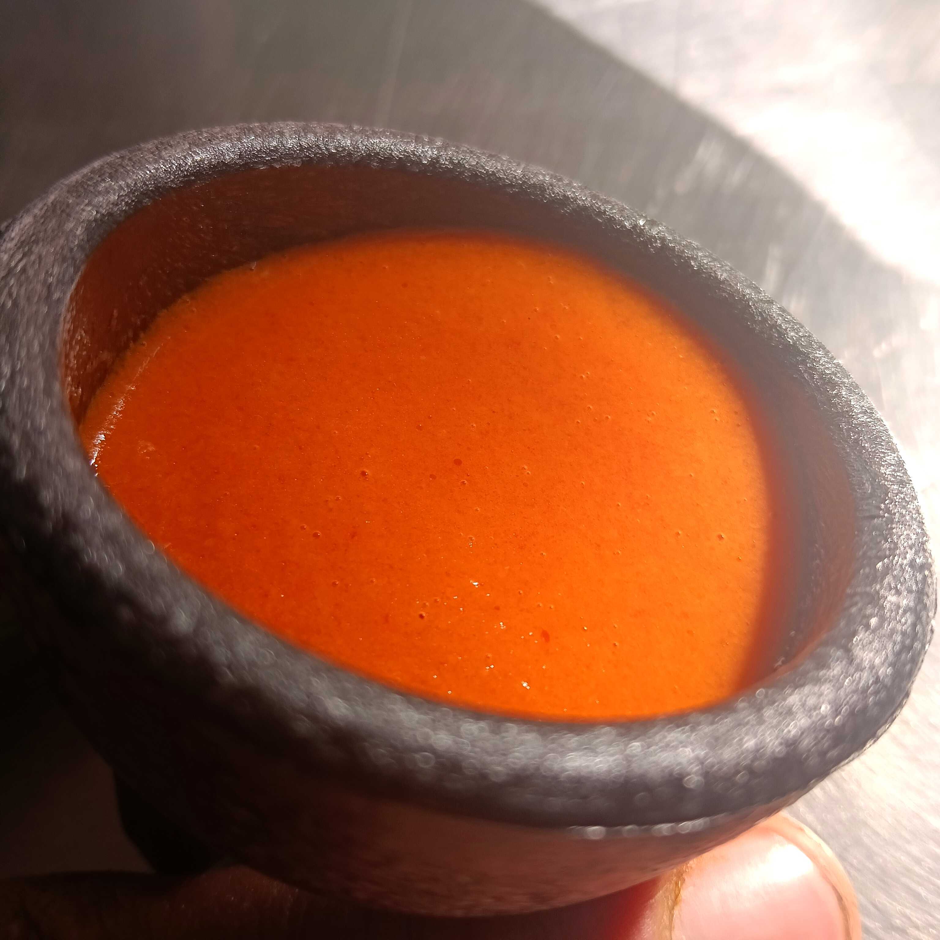 Burrito de 15cm de deshebrada en salsa molcajeteada, incluye lechuga y salsa